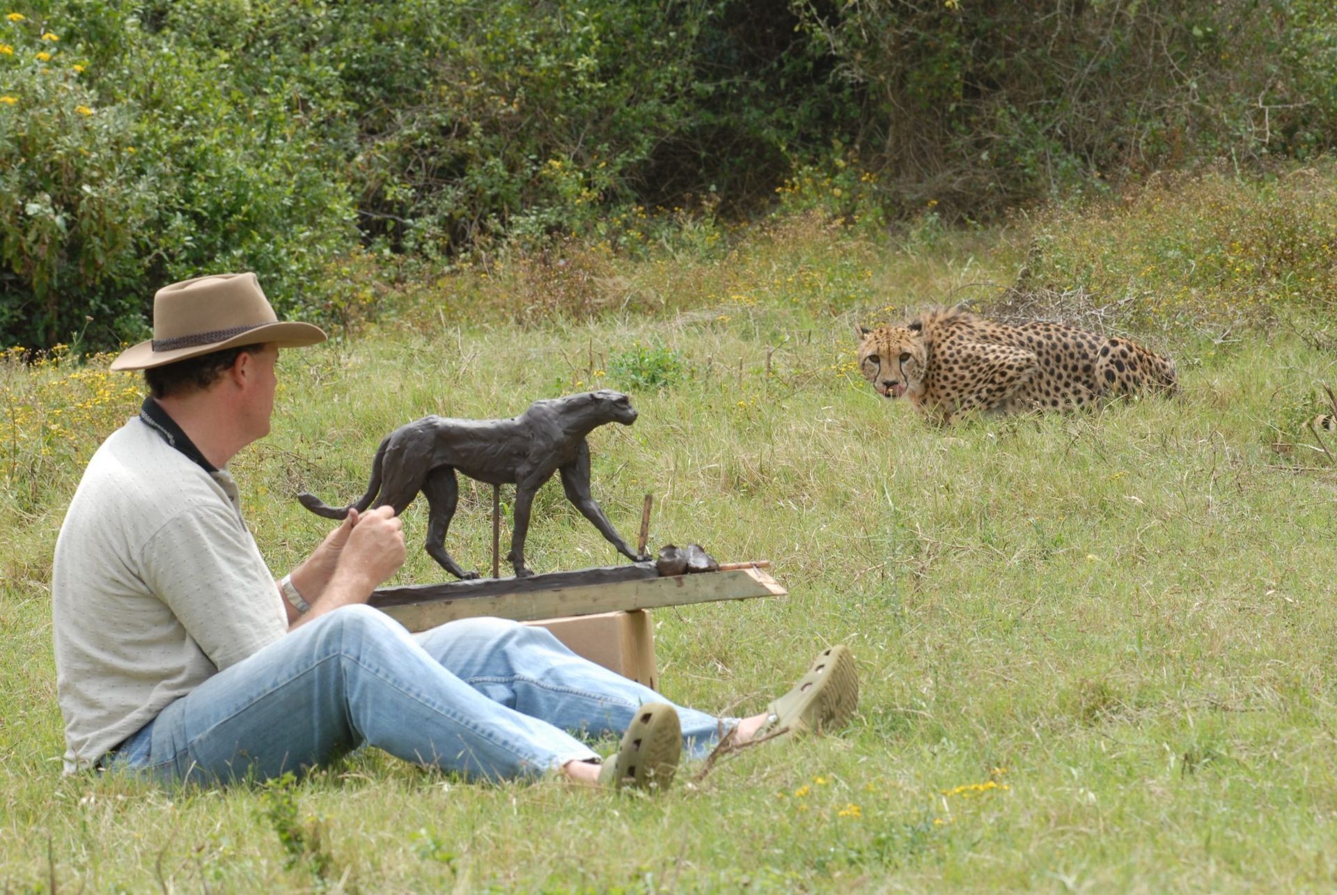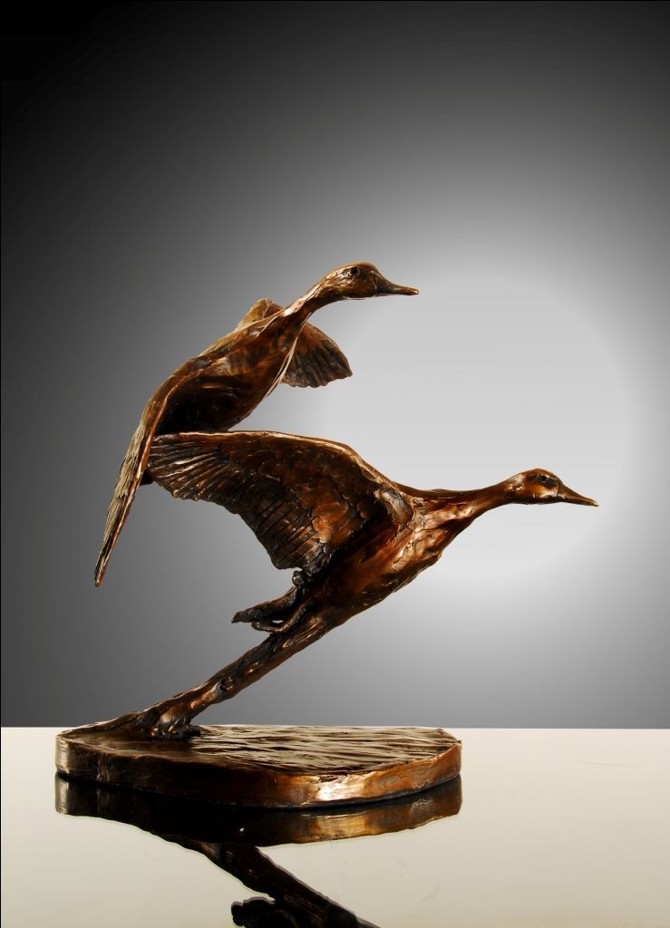 Self-taught as a bronze sculptor, Bruce Little aims to capture the spirit of the creatures in his bronzes, which he has observed and guarded for most of his life. His technique captures the essential movement and attitudes of his subjects.