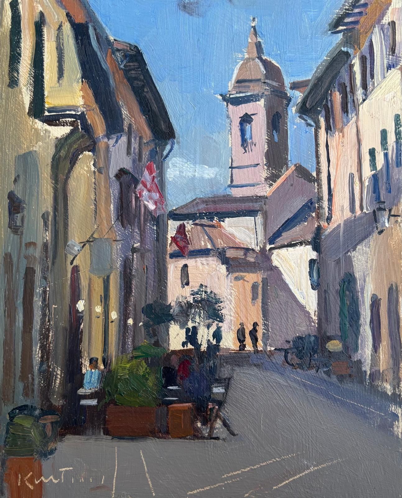 Recording ever-changing moments and weather patterns of the places he paints, Karl works in oils producing both landscapes and cityscapes. His works are a response to what he sees in particular moments in life. It might be figures strolling much-loved coastlines, glistening in ever changing light patterns, or simply perusing high streets of local towns, typical scenes from our everyday existence.