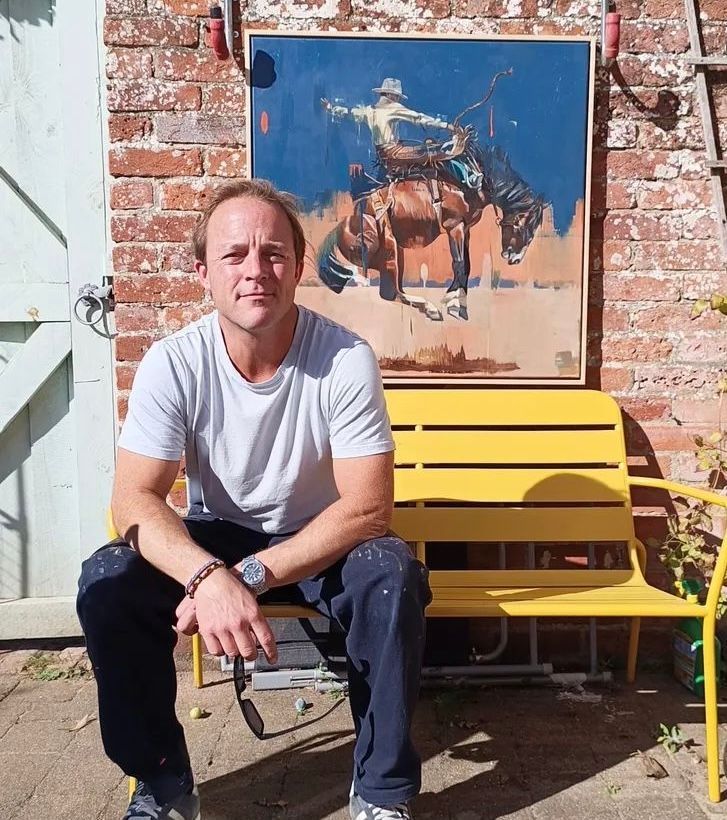 Having covered various subjects and styles in his career he has focused on paintings of Postage Stamps. Fascinated by their association with foreign lands, creatures and cultures. Using the structure of Stamps and playing with text and subjects in order to create a narrative to the works. This is what he finds interesting and inspiring. The opportunity for the viewer to get some sort of escapism, thoughtfulness and playfulness.