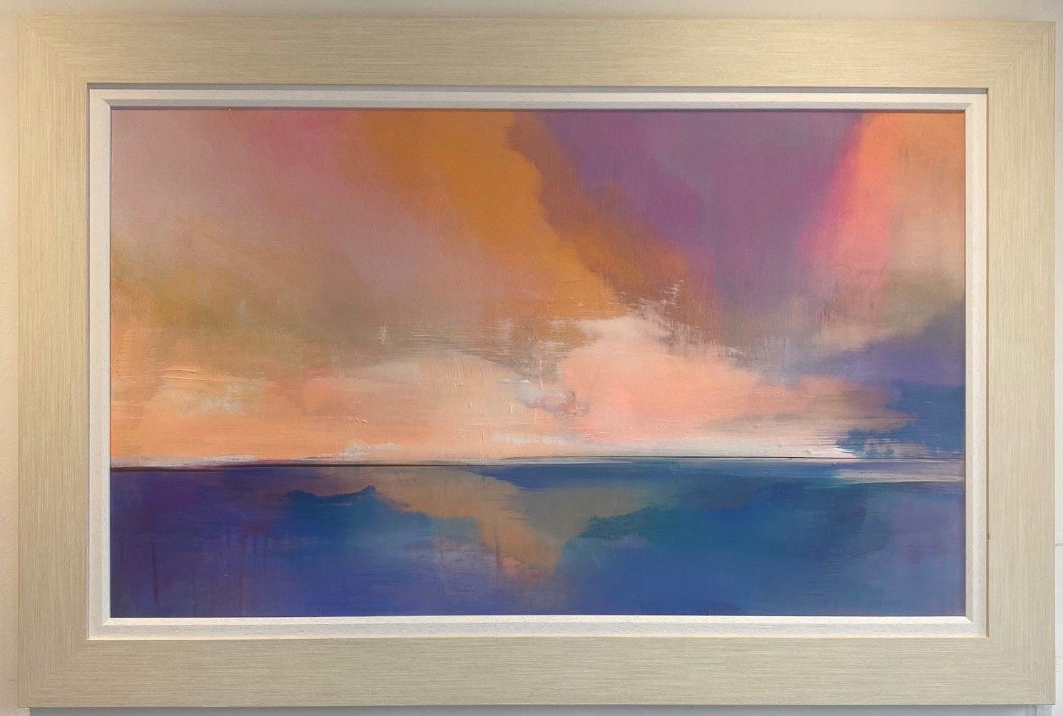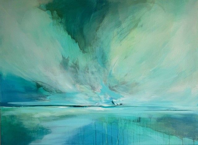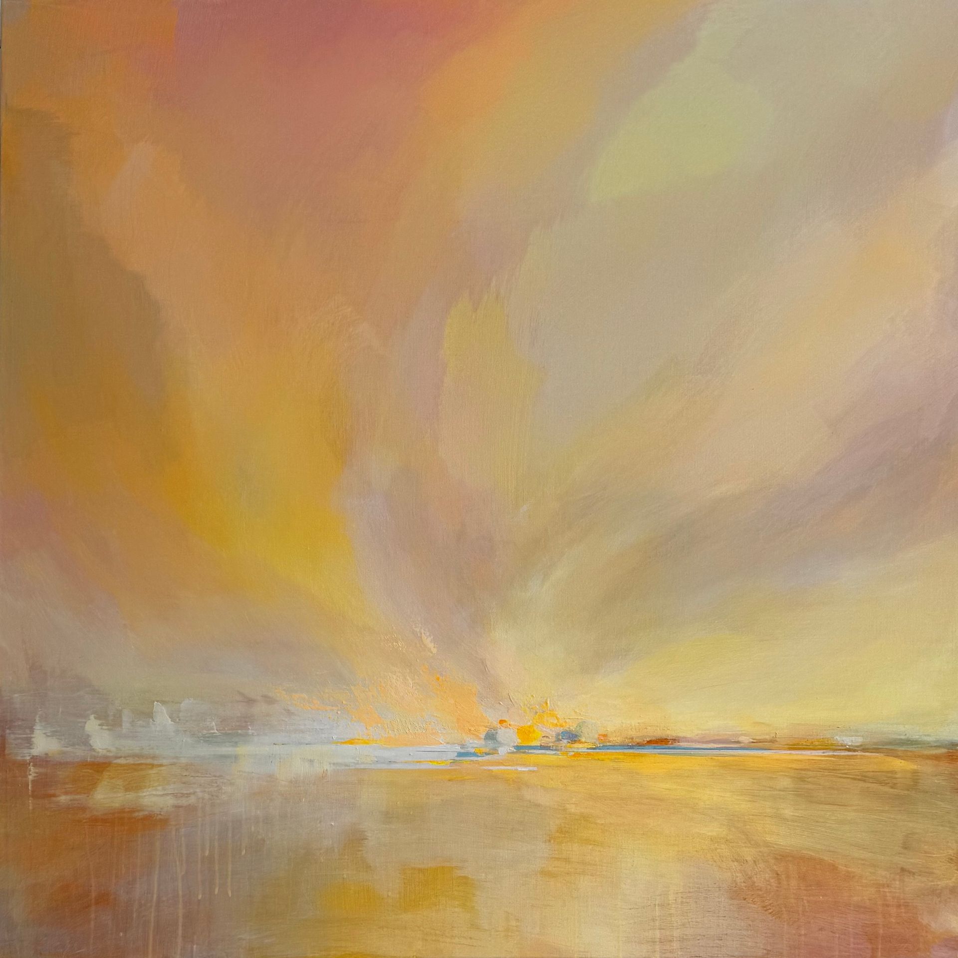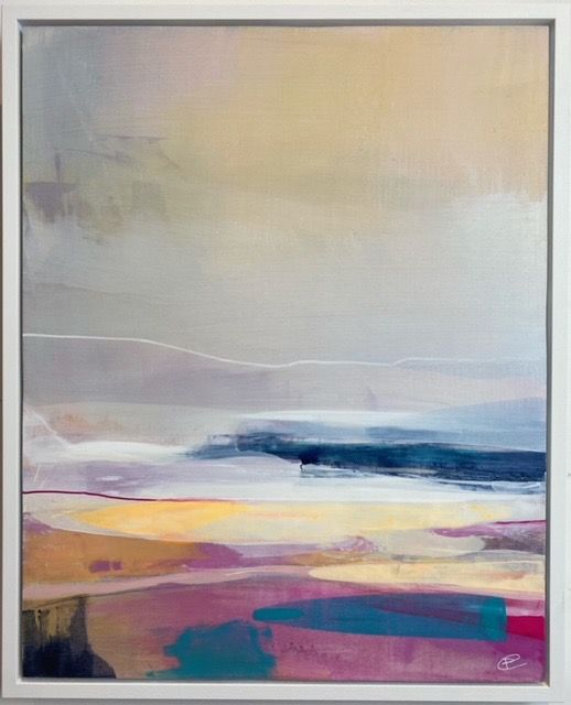 Poppy Cyster is predominantly an abstract artist. Her love and understanding of colour is apparent throughout her paintings. The daughter of an aviator, she spent her childhood with her head in the clouds hanging over the edge of an open cockpit biplane. Gazing at the Scottish landscape below she was captured by the rhythm and shapes of the terrain - the fields, rivers, roads and the mountains all making their mark in her mind. She brings her inspirations back to the studio where those rhythms and structures are put together in her own very distinct style. Her unique handling of composition combines areas of constrained block shapes alongside expanses that ooze energy and free flowing colour.